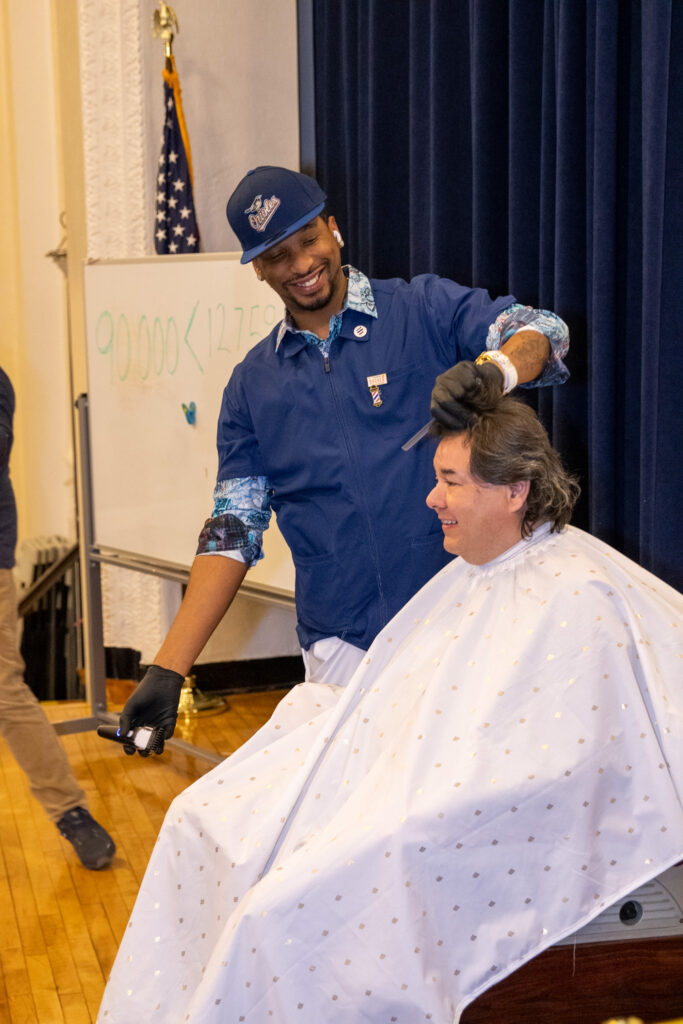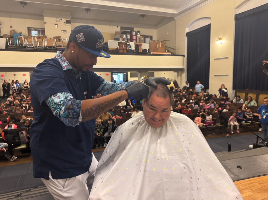 Last Friday afternoon, the Roanoke Avenue Elementary School auditorium was a madhouse. Hundreds of students rattled their seats and erupted in cheers, their voices bouncing off the walls. The cause of all the excitement? Watching their principal … get a haircut.