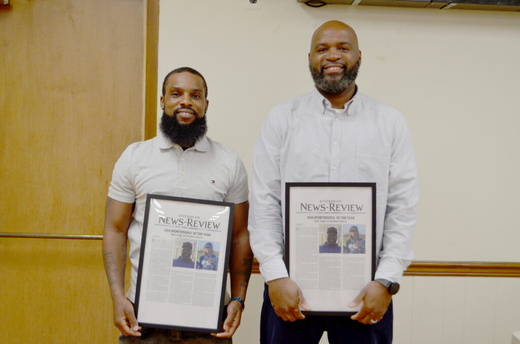 Being a PAL coach is selfless. It takes time out of your life. Results are earned only through hard work and dedication. Building a football program from the ground up isn’t for everybody but Riverhead has the right people in place leading the way. For their efforts in and dedication toward the PAL football program, Rasheen Moore and Mike Heigh have earned the nod as 2024’s Riverhead News-Review Sportspeople of the Year. In their speeches they assured us that what they’ve accomplished is only the beginning.
