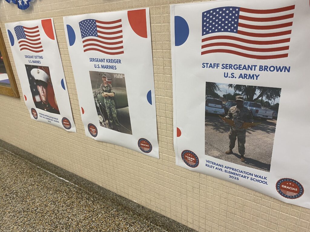 Flags and banners decorated the halls at Riley Avenue Elementary as students and veterans gathered for the school’s first Veterans Appreciation Walk on Monday.