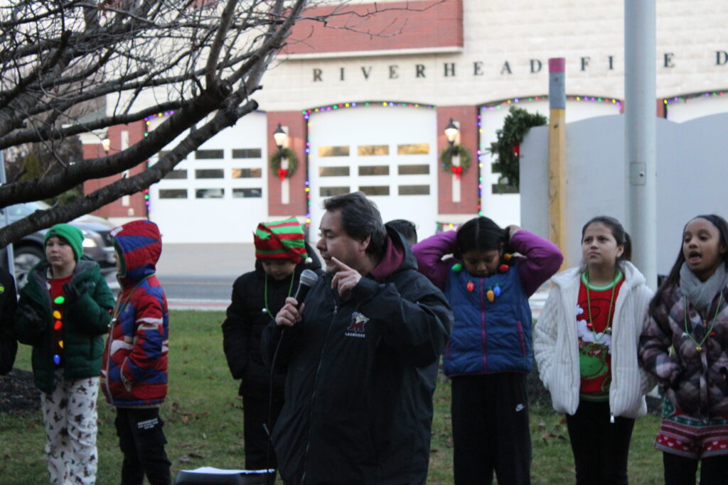 This year’s celebration featured for the first time the help of Riverhead Fire Department, which is located directly across the street. Students, parents and administrators were happy with the surprise addition, taking pictures in front of the tree.