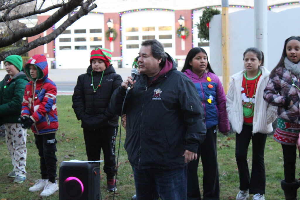 Roanoke Avenue Elementary School officially welcomed the holiday season last weekend with a new tradition: lighting up a giant Christmas tree for the school with the help of the Riverhead Fire Department.