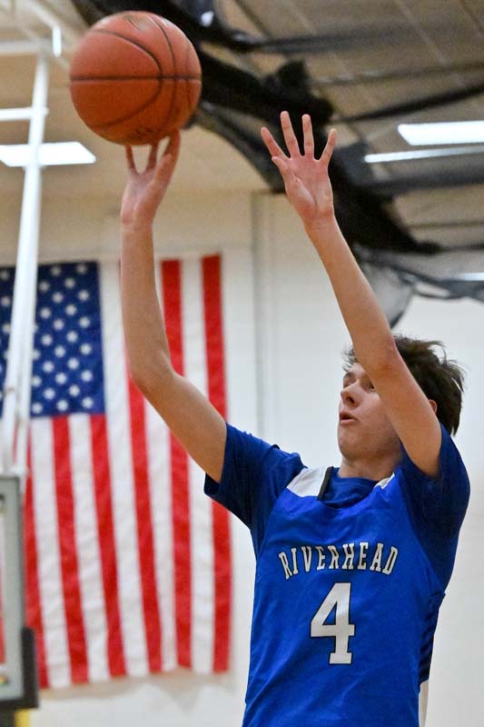 From the opening tip, Riverhead was on a mission. Peter Lagnena was the key scorer early on and didn’t miss. The junior sharpshooter posted 15 points in the first quarter as the Blue Waves grabbed an early 20-point lead.