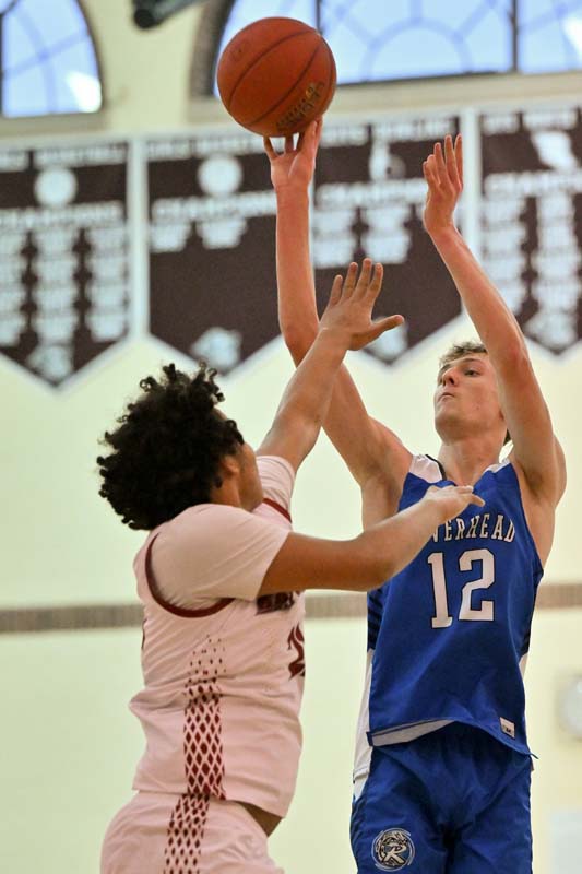 With two minutes remaining in the third quarter, junior guard Peter Lagnena hit two consecutive threes — one from so far behind the three-point line it could have come from another planet — and it electrified the Riverhead crowd at Bay Shore High School. It cut the lead to six, and after a Landon Zaleski free throw, the lead was only five.