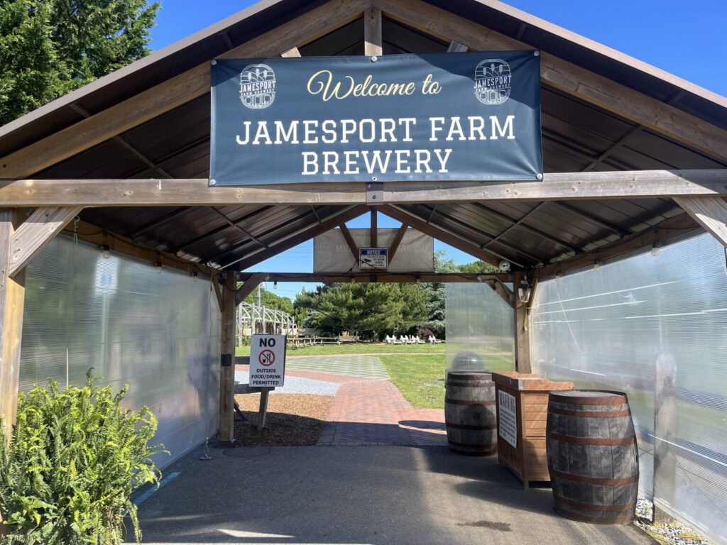 Founded by Anthony and Melissa Caggiano, Jamesport Farm Brewery was the first farm brewery on Long Island and has been open since 2017. To attain a New York State farm brewery designation, beer or cider must be made primarily from locally grown farm products. According to the New York State farm brewing law, no less than 60% of the hops and 60% of all other ingredients must be grown in New York State. (As of January 1, 2029, that requirement will rise to 90%.)