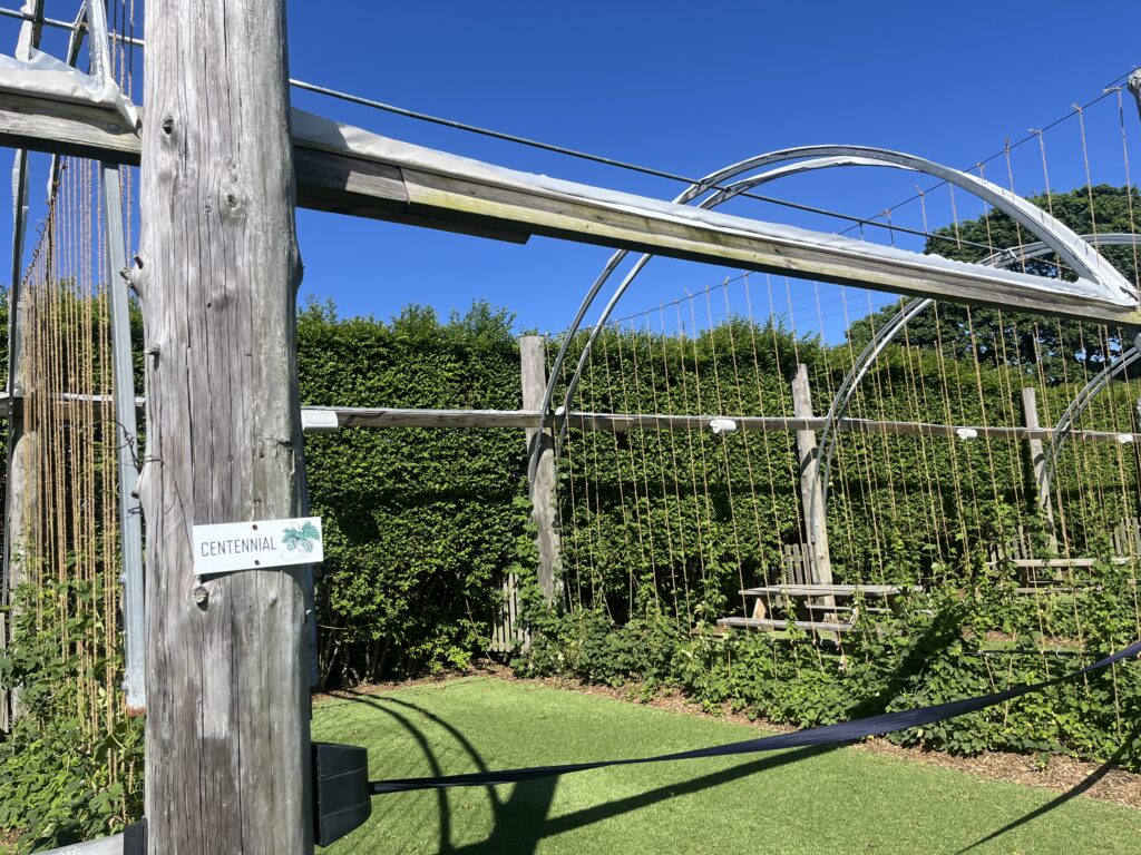 A small hop field is planted near the brewery’s entrance, so patrons can check out the vines climbing up tall trellises, each section labelled with the different varieties, such as Magnum, Columbus and Centennial.