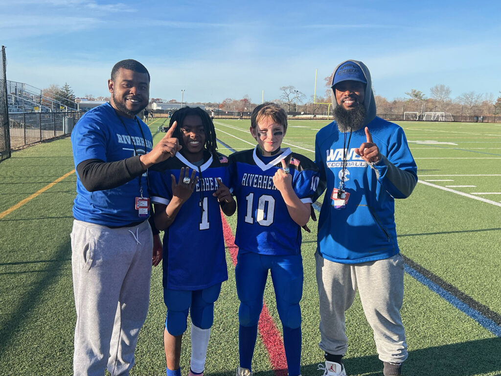 On Nov. 10, the 11-and-under Blue Waves, coached by Moore, and the 10-and-under Blue Waves, coached by Heigh, took the field in their league championship — scheduled to play one after another at the Pulaski Street Sports Complex. The 10u team defeated West Islip, 28-0, and the 11u team finished the season with a 22-6 victory over West Babylon. The games drew a massive crowd; parents, alumni, teachers and coaches all wanted to see these kids compete at a high level.