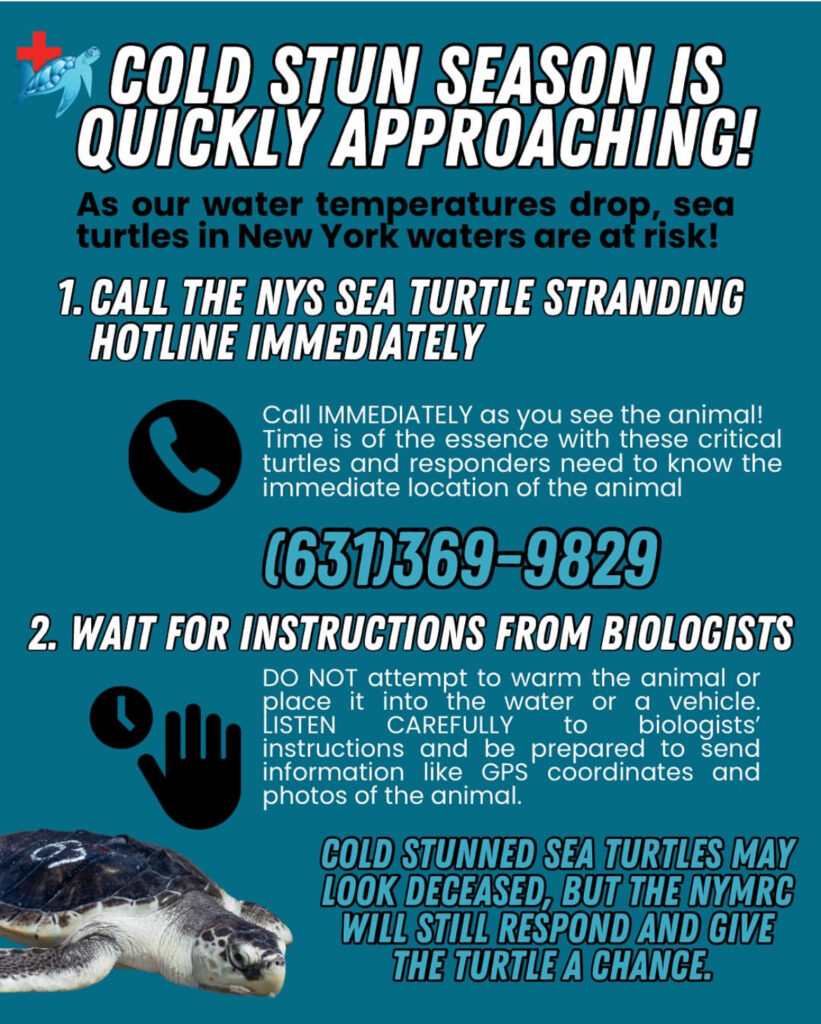The New York Marine Rescue Center in Riverhead is urgently recruiting volunteers to patrol Long Island beaches for cold-stunned sea turtles, as the November-to-February rescue season officially begins.