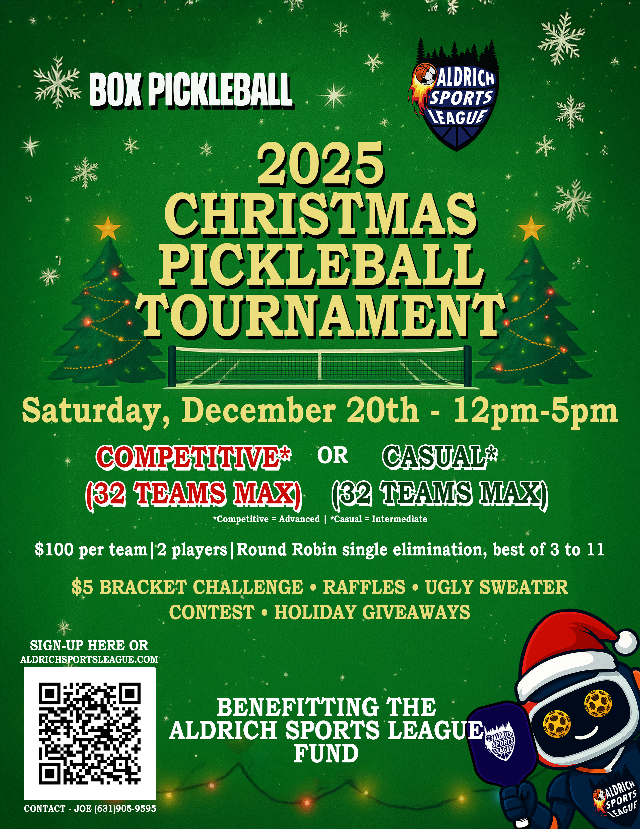 Grab your paddles, your Santa hat, and just about the ugliest holiday sweater you can find, because the Aldrich Sports League is hosting its inaugural Christmas Pickleball Tournament next month.