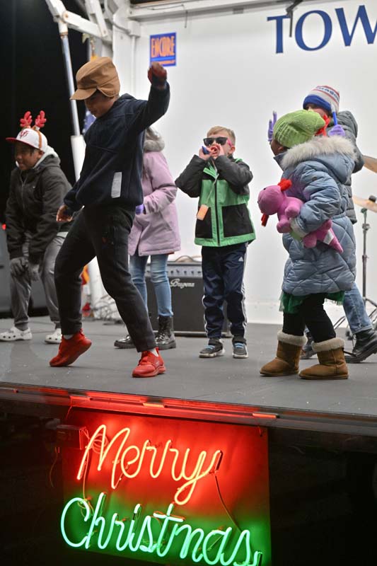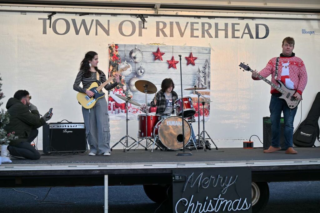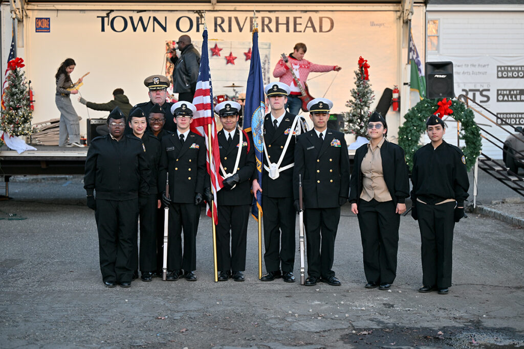 As part of a kick-off to the holiday season, Riverhead Townscape, the Lions Club, Chamber of Commerce and Peconic Bay Power Squadron got Santa Claus himself to drop by downtown Riverhead on Saturday for its annual tree lighting. He made a splash arriving by boat after the parade, which started at the Lions Club. The donated tree was lit and much fun was had, with East End Arts live musical performances and a community bonfire.