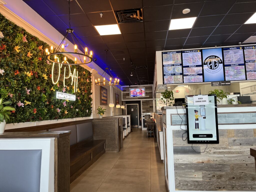 Hampton Gyro has a new branch in Riverhead in the shopping center on the Route 58 traffic circle. The stylish, sparkling clean restaurant opened its doors in March and offers “fast casual” Greek and American food to dine in or take out.