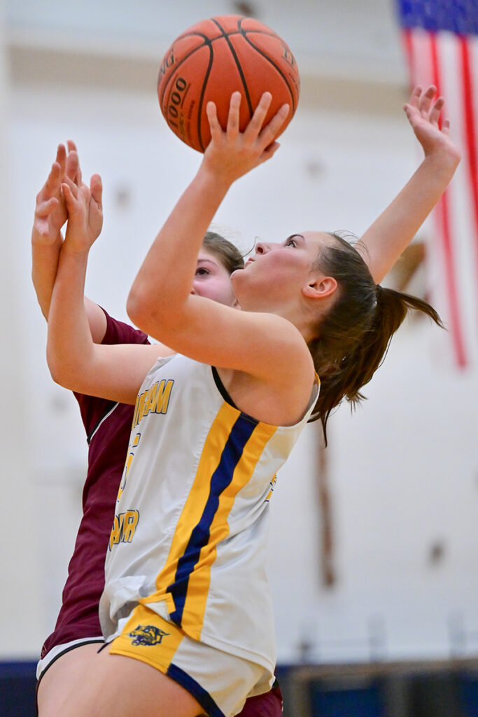 The Shoreham-Wading River girls basketball players end their warmup session the same way every game — a make from the free throw line followed by two layups. When Kady...