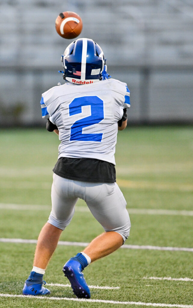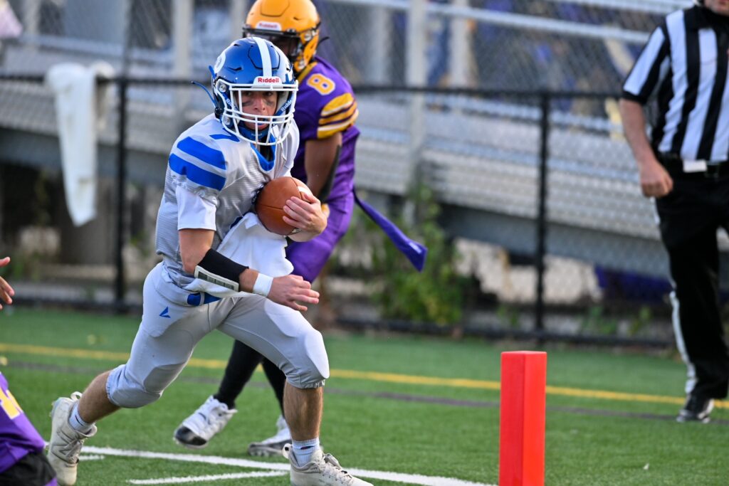 The Blue Waves put the ball in the hands of last year’s center, Karter Doyle, who is this year’s quarterback, his first season playing the position. He slimmed down from last year but the switch from snapper to signal caller was very much a question mark.