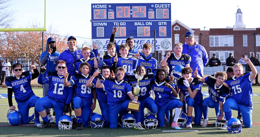 In the midst of the worst stretch in Riverhead high school football history, help is on the way. Both the 10u and 11u football teams won PAL championships under the leadership of two championship coaches. Rasheen Moore and Mike Heigh both won championships as members of the Blue Waves and now they’re trying to instill that old-school culture into the youth.
