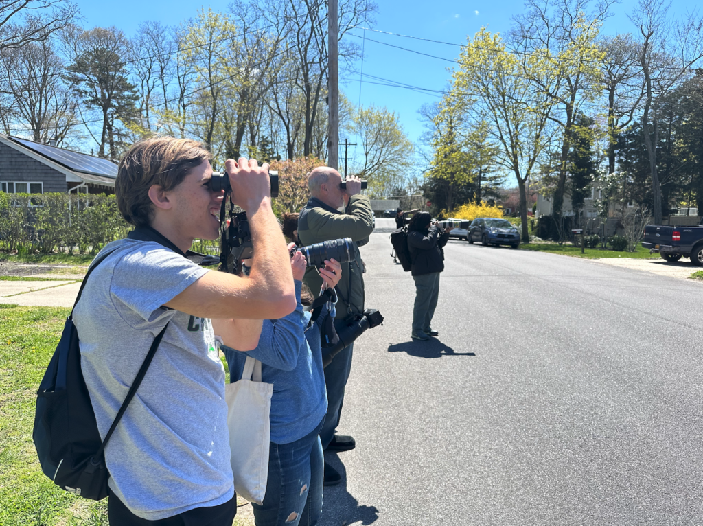 At lunchtime on Monday, a small crowd of birders lined the road across from Ms. Rocco’s home.
